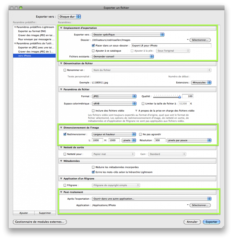 Exporter de Lightroom vers iPhoto