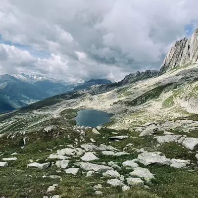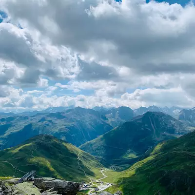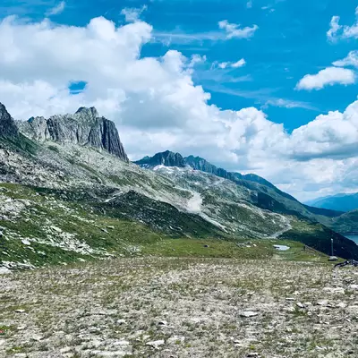 Oberalpass, avec des télécabines, des trains et des montagnes étranges